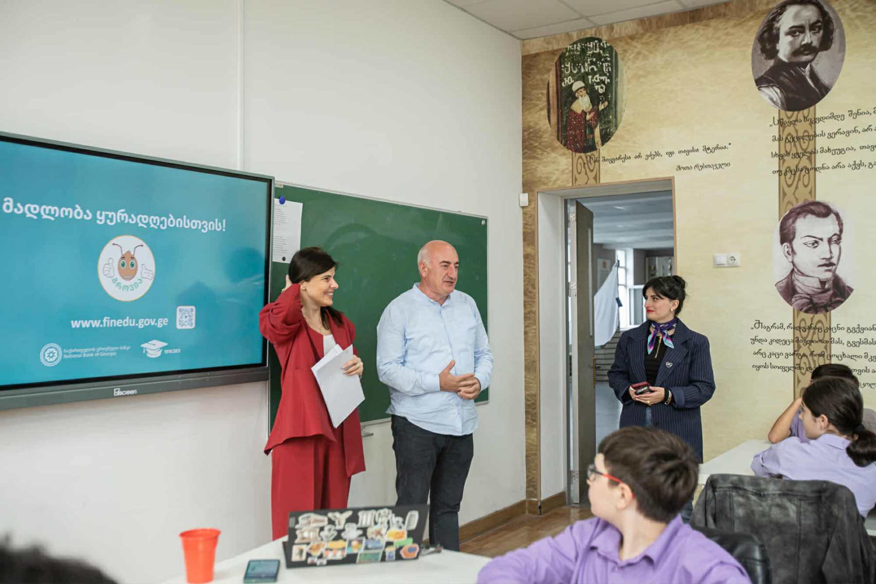 ფინანსური  განათლების “ფინედუს” წლევანდელი კამპანიის ფარგლებშიც სხვა აქტივობებთან ერთად დაიგეგმა  ერთ-ერთი ყველაზე საყვარელი და პოპულარული პროექტი – “მოიწვიე ფინედუ კლასში”. აღნიშნული კამპანია ასევე ეძღვნება  ეროვნული ვალუტის – ლარის შემოღებიდან 30 წლის იუბილეს. სწორედ ამიტომ, პროექტის ფარგლებში ფინედუს დესპანები კონკურსის შედეგად შერჩეულ ერთ-ერთ , სსიპ ქუთაისის 30-ე  საჯარო სკოლის  7²  კლასს ესტუმრნენ  15 ოქტომბერს.  ფინედუს დესპანებმა მოსწავლეებისათვის თამაშზე დაფუძნებული სწავლების ფორმატით საინტერესო პრეზენტაცია და  სახალისო  აქტივობა  ჩაატარეს . გამართეს დისკუსია ფინანსური წიგნიერების კომპონენტების  შესახებ,როგორიცაა :